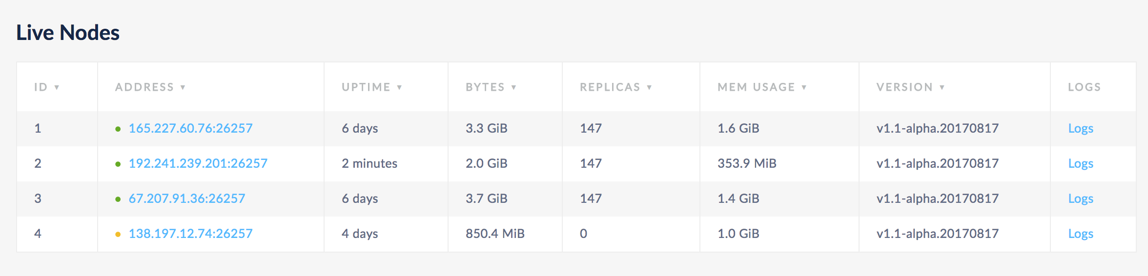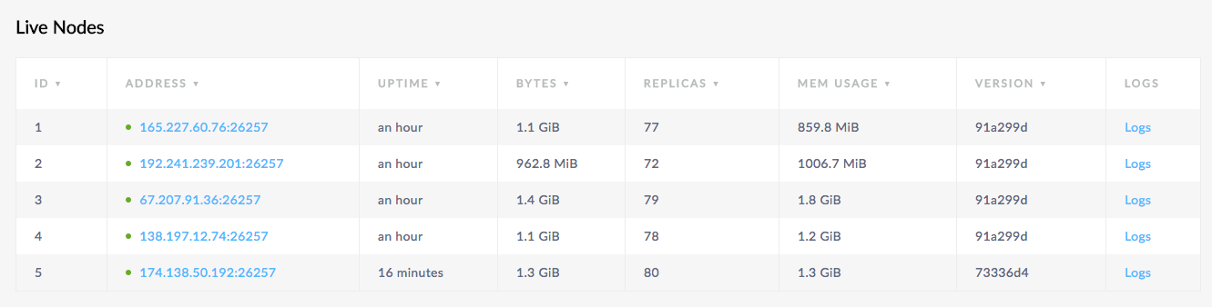 id | address | build | started_at | updated_at | is_available | is_live | gossiped_replicas | is_decommissioning | is_draining