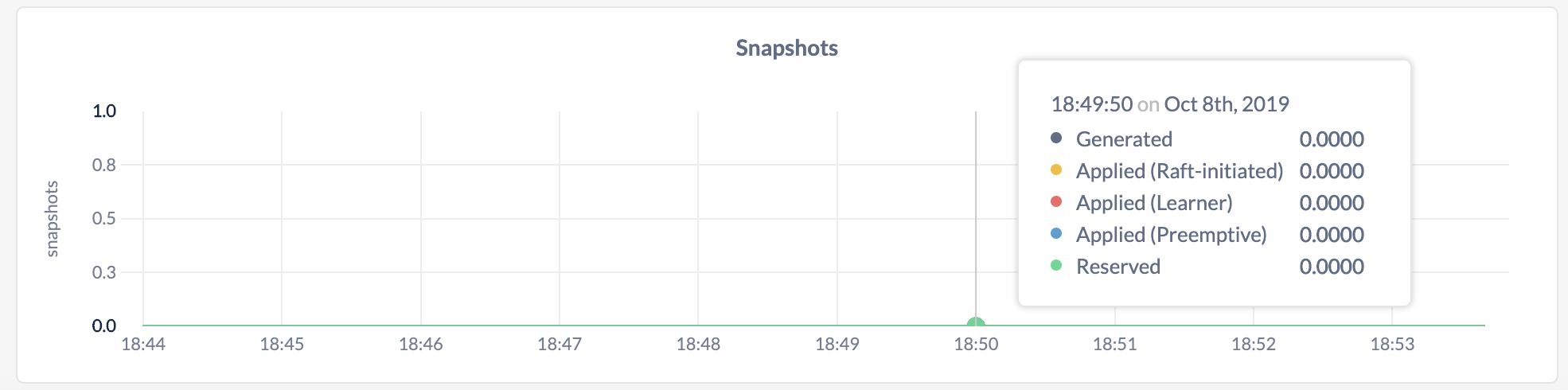 | Applied (Raft-initiated) | The number of snapshots applied to nodes per second that were initiated within Raft. |